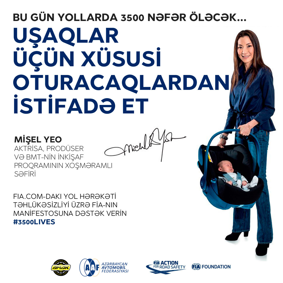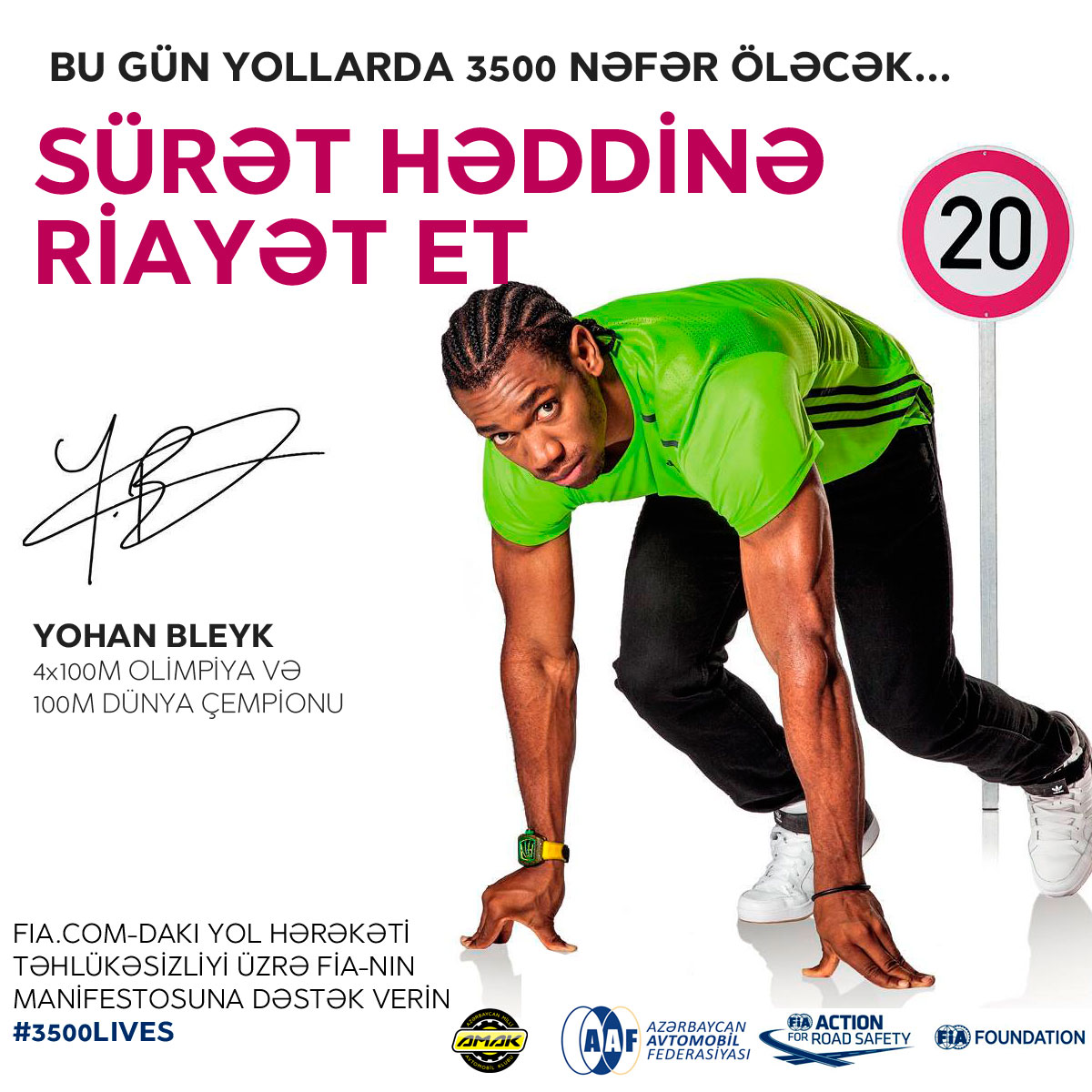 Hal-hazırda kampaniya dünyanın 30 ölkəsində həyata keçirilir. AMAK bir üzv klub olaraq öz növbəsində # 3500LIVES kampaniyasına qoşularaq paytaxtın bir çox yerlərində reklam lövhələrində kampaniyanın görüntülərini nümayiş etdirir. AMAK bu kampaniyaların yol hərəkəti təhlükəsizliyi fəaliyyətinin inkişafına, xüsusilə də, yol istifadəçilərinin – ölkənin piyada və sürücüləri arasında məlumatlılığın artırılmasında faydalı olacağına inanır.