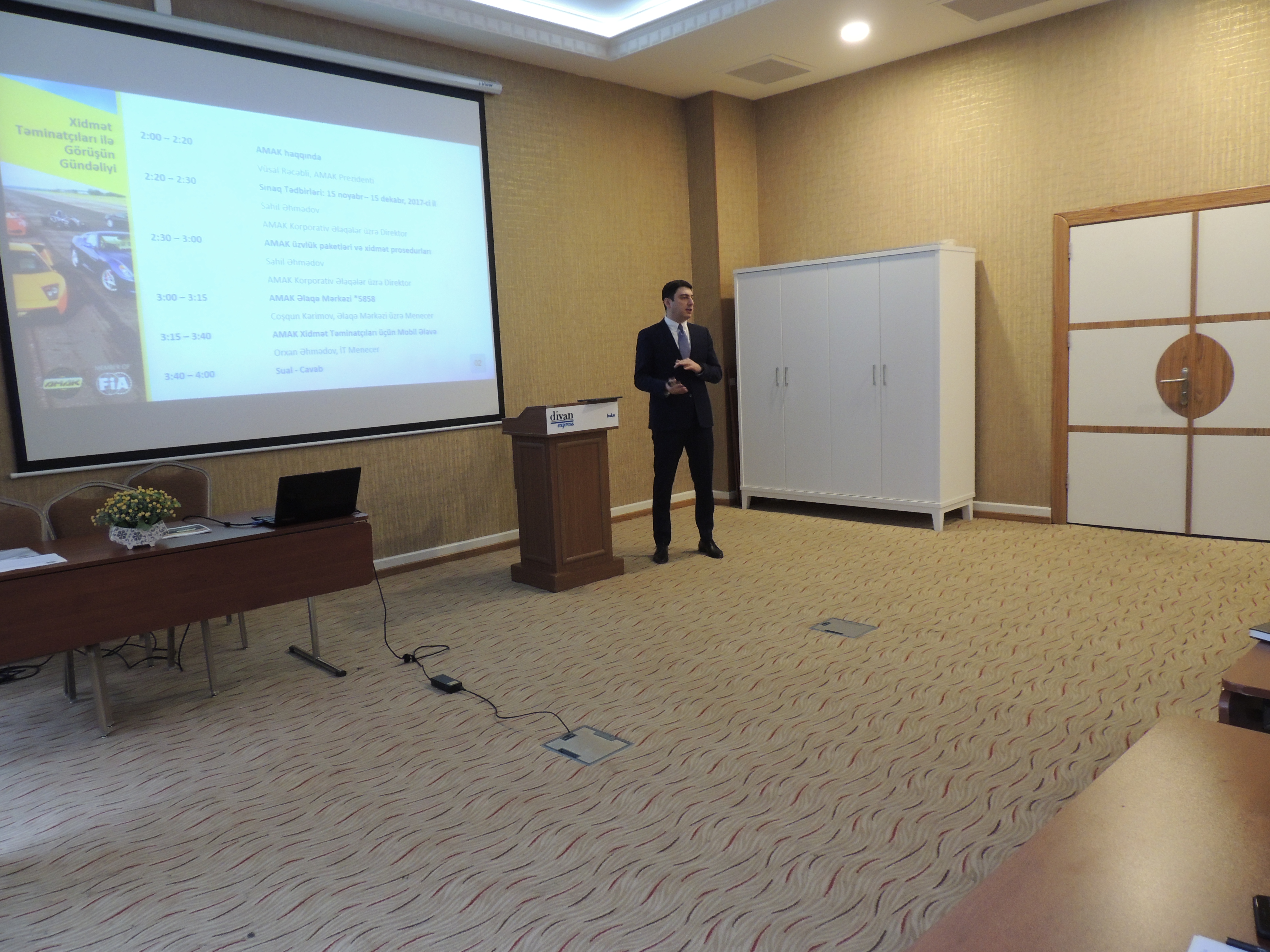 Bu məqsədlə, noyabr ayının 10-da Divan Oteldə AMAK-ın təşəbbüsüylə xidmət mərkəzləri və bonus partnyorlarıyla birgə rəsmi görüş keçirilmişdir. Görüş zamanı klubun prezidenti Vüsal Rəcəbli əməkdaşlıq edən tərəflərə AMAK-ın mahiyyəti, məqsədi, xidmətləri və planları barədə ətraflı məlumat vermişdir. İştirakçılar texniki yol-yardımı, əlaqə mərkəzi, müştəri paneli və AMAK mobil əlavəsi barədə məlumatlarla və təlimatlarla tanış olmuşdur.
