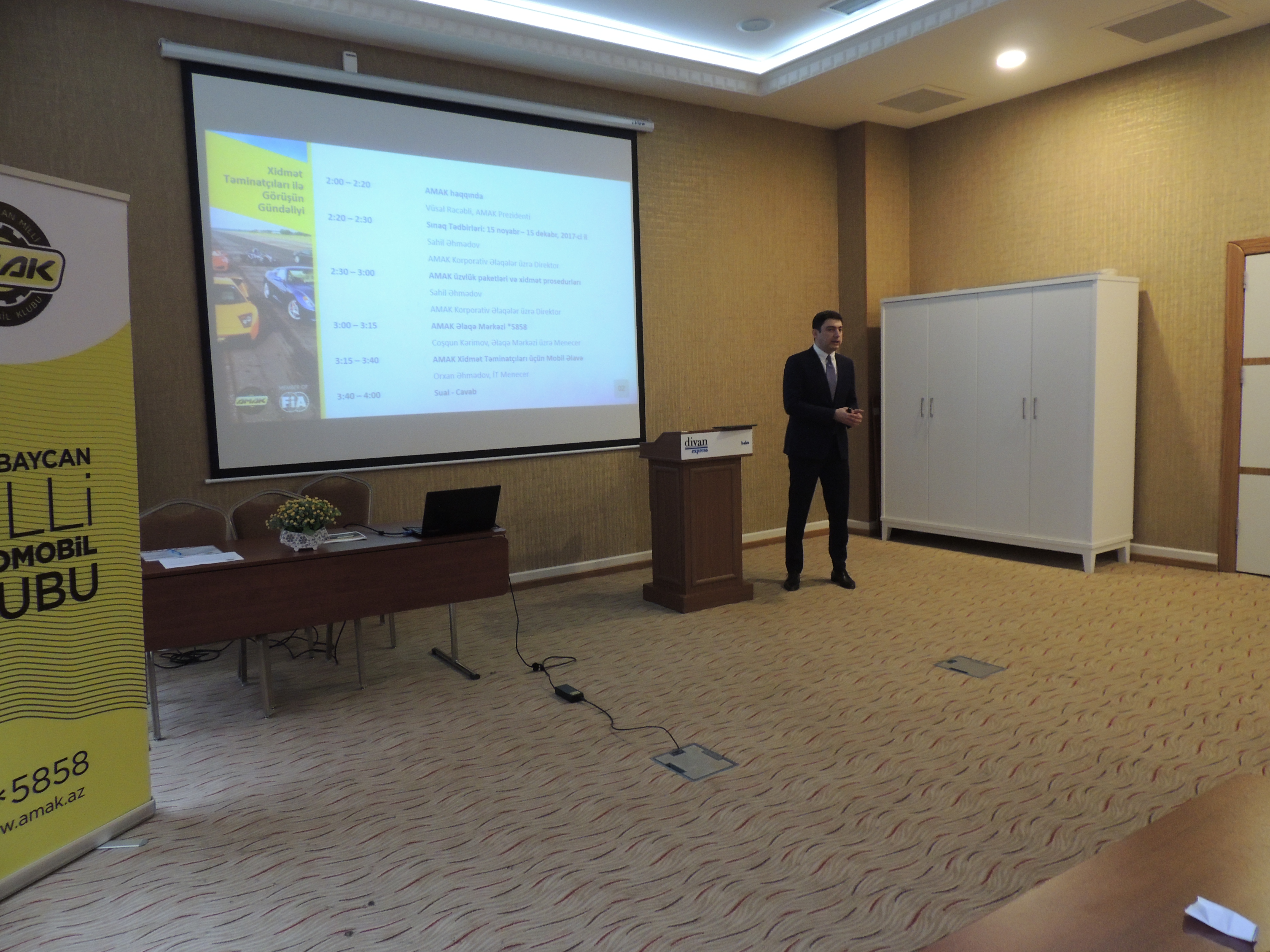 Bu məqsədlə, noyabr ayının 10-da Divan Oteldə AMAK-ın təşəbbüsüylə xidmət mərkəzləri və bonus partnyorlarıyla birgə rəsmi görüş keçirilmişdir. Görüş zamanı klubun prezidenti Vüsal Rəcəbli əməkdaşlıq edən tərəflərə AMAK-ın mahiyyəti, məqsədi, xidmətləri və planları barədə ətraflı məlumat vermişdir. İştirakçılar texniki yol-yardımı, əlaqə mərkəzi, müştəri paneli və AMAK mobil əlavəsi barədə məlumatlarla və təlimatlarla tanış olmuşdur.