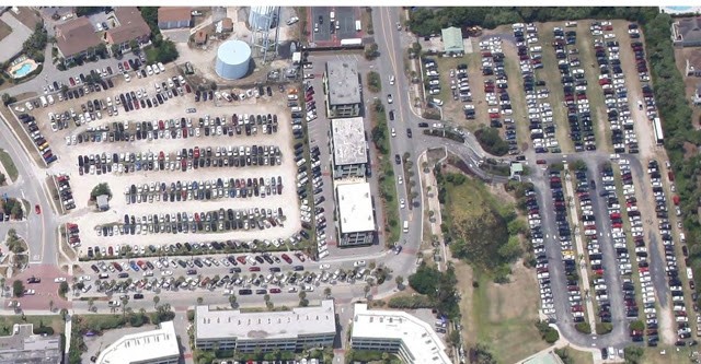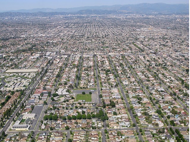 Avtomobil yönümlü şəhərlərin məzkəzlərində adətən az əhali yaşayır, ofis və parklanma yerləri üstünlük təşkil edir: