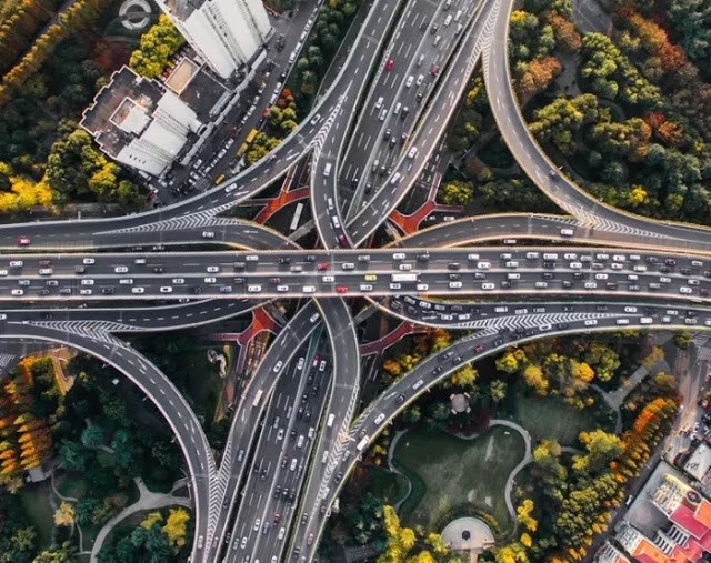 Yüksək buraxılış qabiliyyəti olan yol şəbəkəsi bütün şəhərdən keçir,estakada və yol qovşaqları çoxluq təşkil edir: