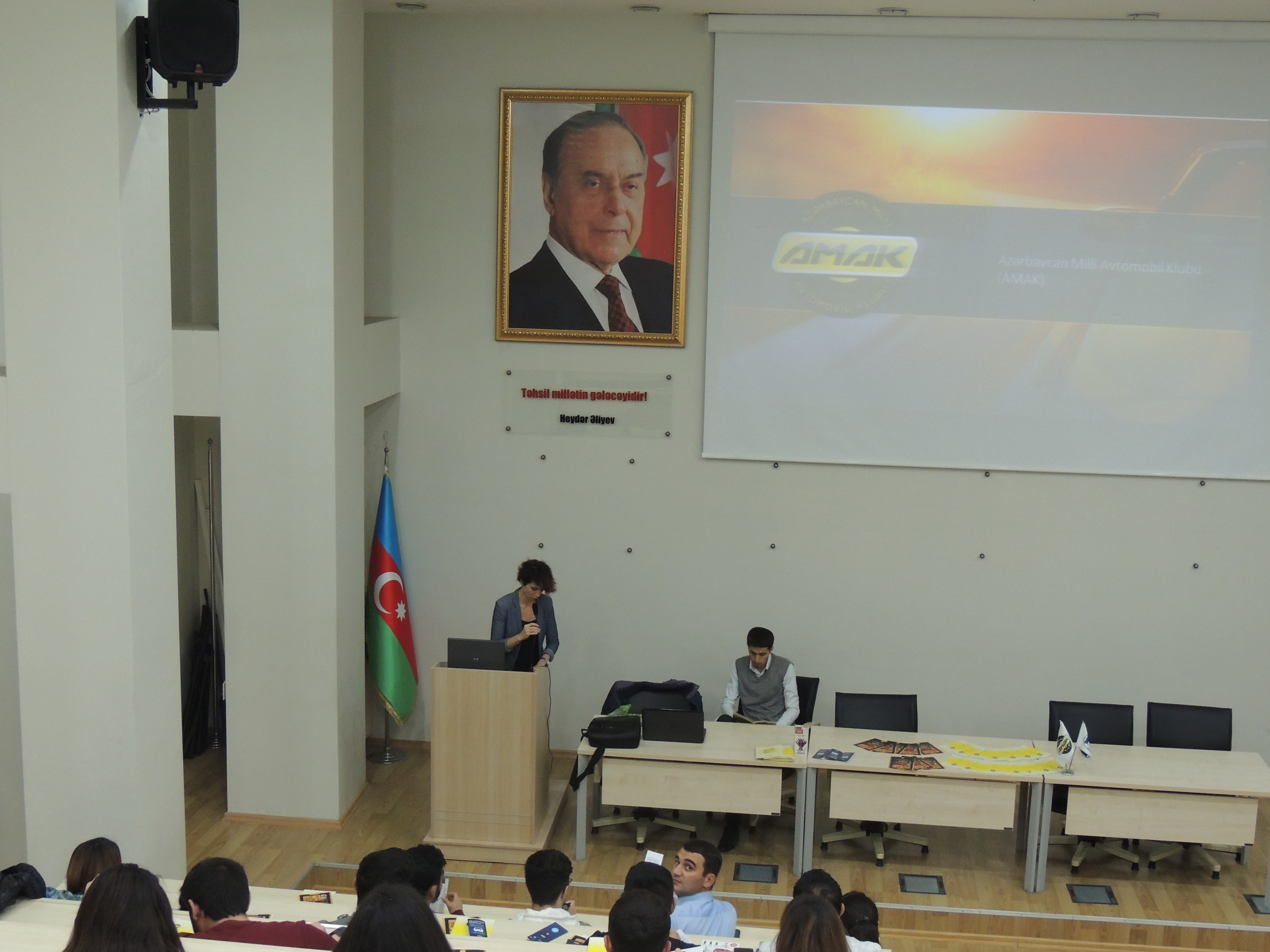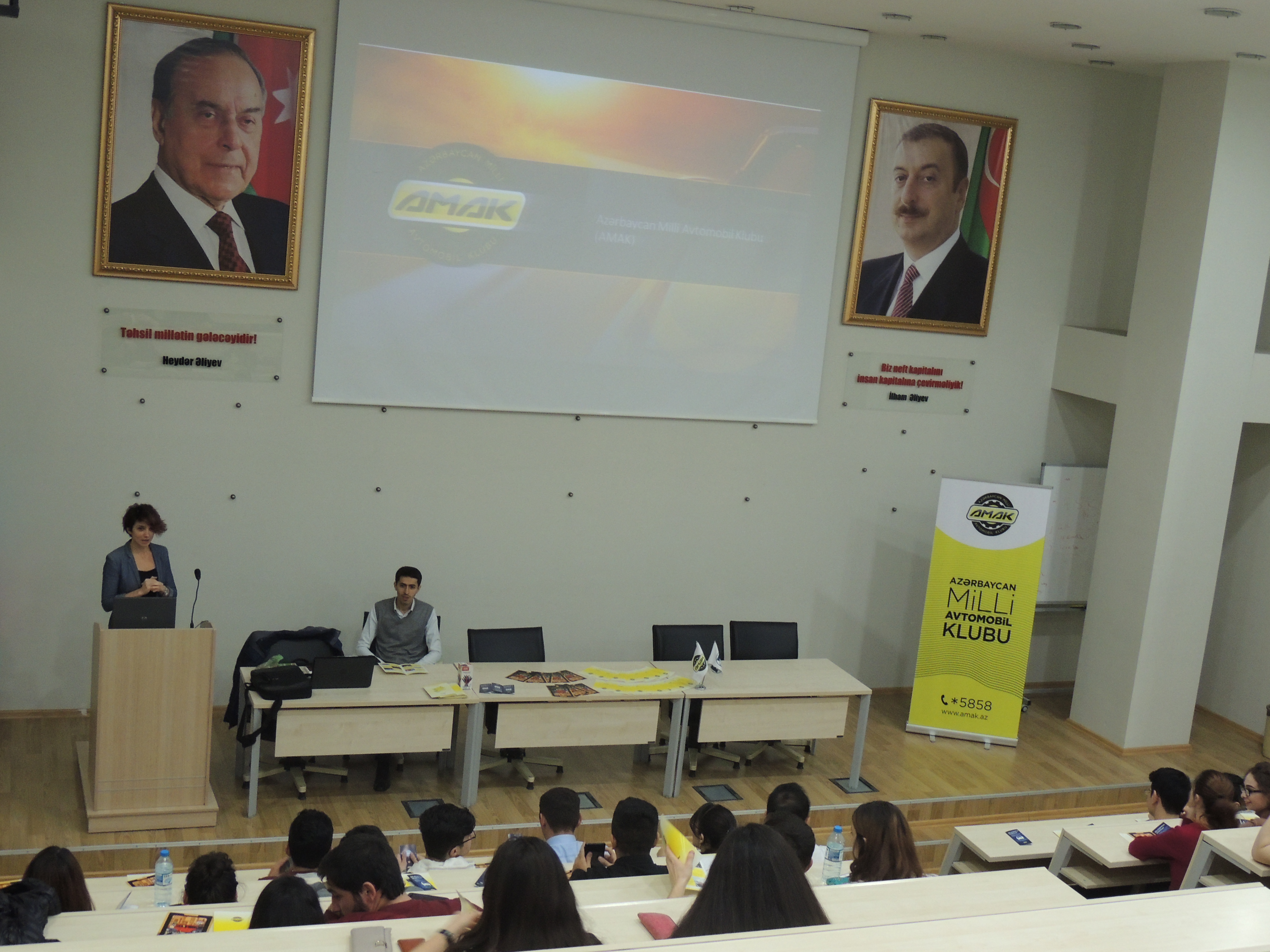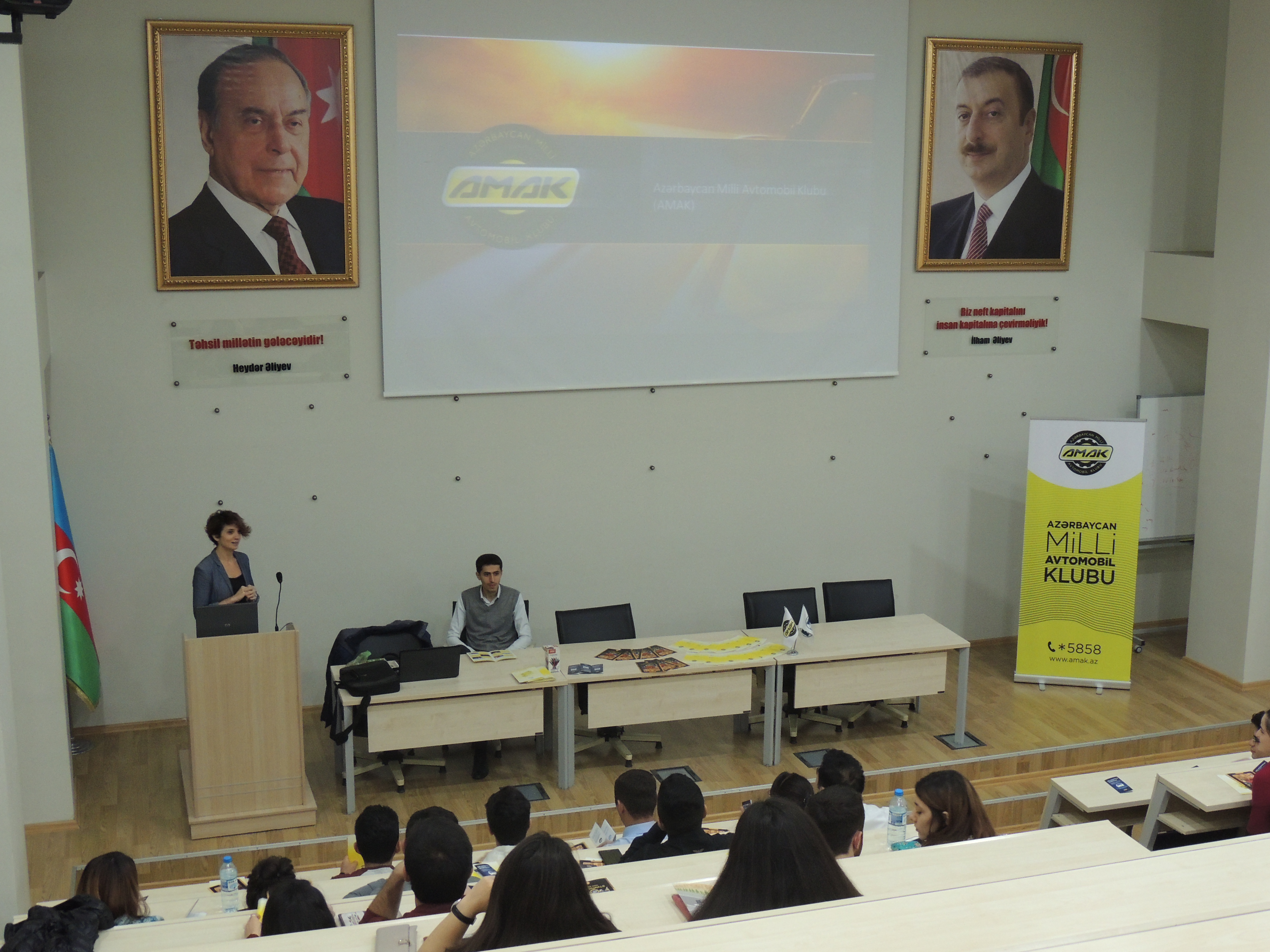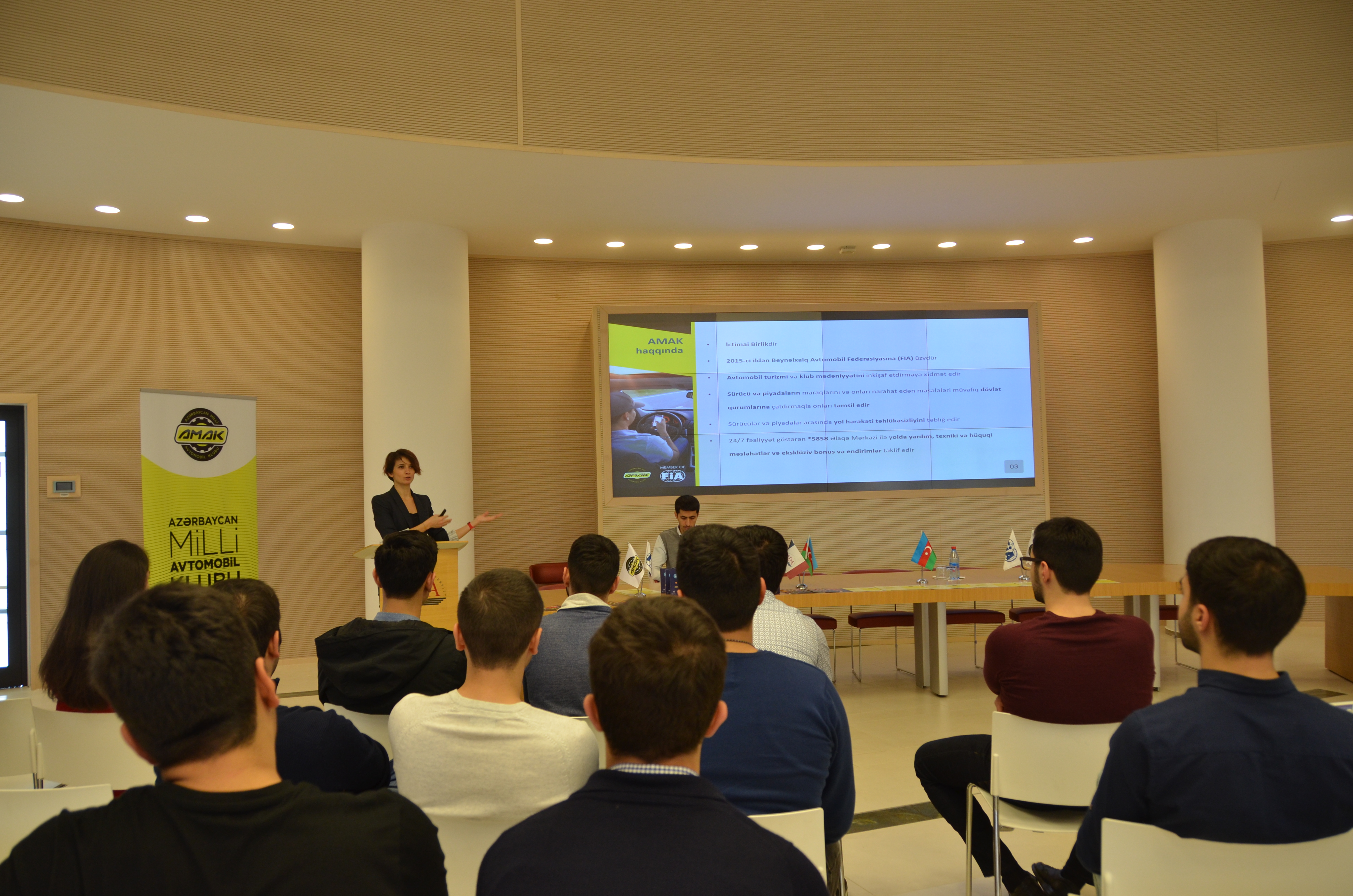 Tələbələrlə görüş zamanı AMAK Yol Hərəkəti Təhlükəsizliyi Layihələri və Təlimlər üzrə Menecer Vəfa Hüseynli klubun tarixi, məqsədi və görülən sosial işlər barədə geniş məlumat vermiş və tələbələrdə yaranan sualları cavablandırmışdır.
